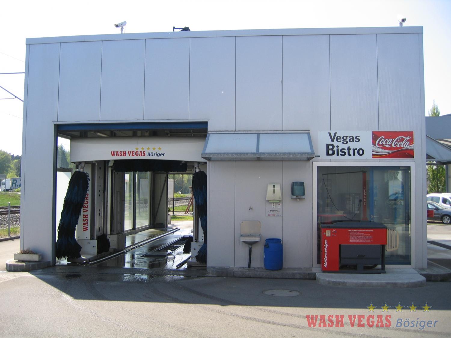 WASH VEGAS Bösiger macht es Ihnen einfach: Hier erledigen Sie die Autowäsche ohne zeitraubendes Prozedere. Am Schnellsten in der Portalanlage (lackschonende Textilwaschtechnik!) oder doch mit etwas Handarbeit auf einem der gut ausgerüsteten Selbstbedienungsplätze. Jede Variante zeigt hinterher dasselbe Resultat: eine fleckenfrei glänzende Karosserie. Für dieses Tüpfelchen auf dem i sorgt das ultrareine Osmose-Wasser beim Nachspülen.